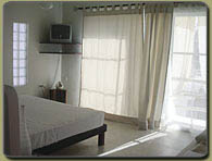 | The three studio apartments, one on each of three levels, at elements of the island are located behind the tropical gardens and waterfall fountain. Each apartment has a private balcony overlooking the gardens and fountain. They are quiet, private and secure. The Asian décor combines simplicity, serenity and comfort. Each apartment has one king size bed and one futon-sofa and can accommodate one or two people. |